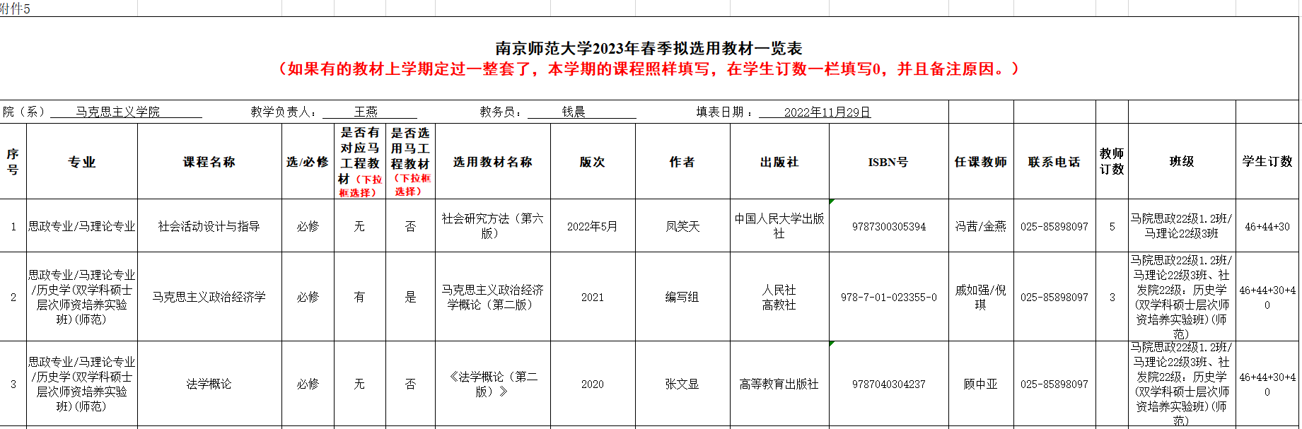 根据教育部《普通高等学校教材管理办法(附件 1)》(教材〔2019〕3号)文件精神,以及学校《关于2022年春季教材选用的通知》文件精神,经过任课教师确定教材,学院专家组审核,党委把关,现将2022-2023-2学期的教材使用情况公示如下: