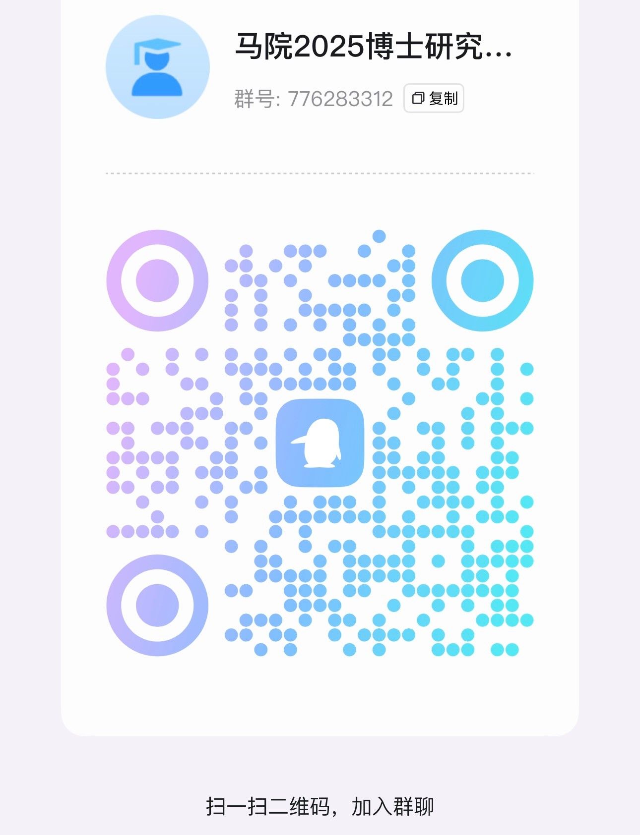 博士联络QQ群号:776283312(初审通过的考生应尽快实名加入该交流群,便于及时接收后续相关通知)
