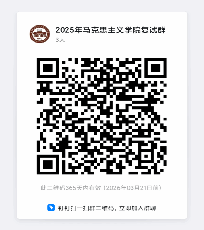 本院复试工作的联络使用考生钉钉群,请进入复试名单的考生扫描二维码,以“专业名称+实名”申请加入本院考生钉钉联络群。