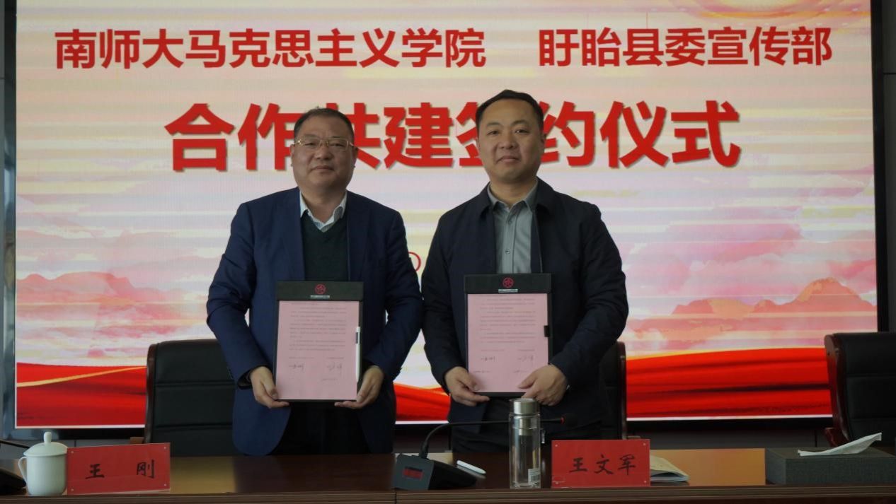院长王刚与盱眙县委宣传部部长王文军共同签署合作共建协议。