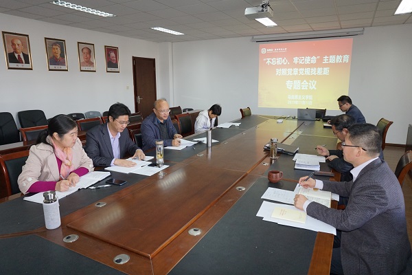根据学校和学院“不忘初心、牢记使命”主题教育实施方案,学院党员领导干部2019年11月11日上午10点在行敏楼524召开对照党章党规找差距专题会议。在会议开始前,每位党员领导干部已经对照“18 个是否”要求,一条一条列出存在的问题,并准备了发言提纲,以彻底的自我革命精神检视自我、自觉修正错误。