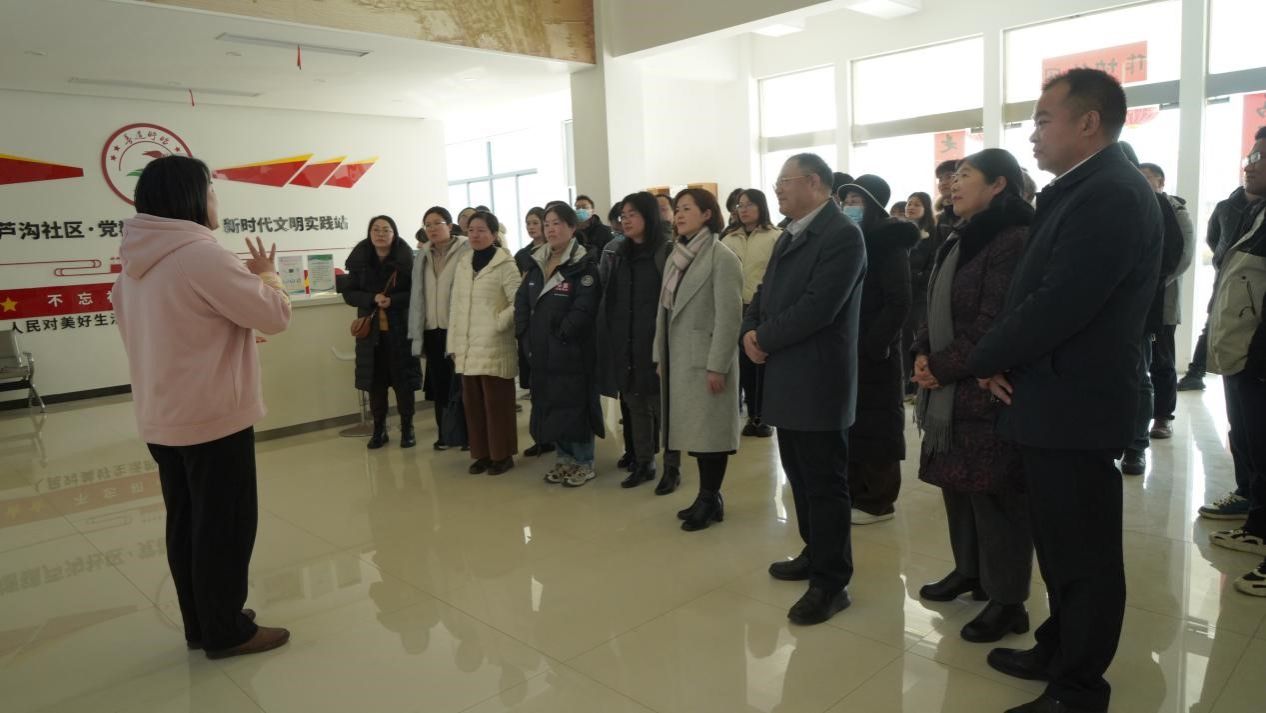老师们还考察学习了黄花塘镇芦沟社区。芦沟社区的党总支书记徐玲曾是中国首艘航母“辽宁舰”的第一位女操舵兵。徐书记向老师们详细介绍了社区为解决老百姓的生活难题所设立的一系列便民措施,如多功能图书阅览室、暖心食堂、红色放映厅、共享菜园等。徐书记用生动幽默的话语讲解着亲身的工作经历,彰显了基层干部尽职尽责、勇担使命的精神气质。