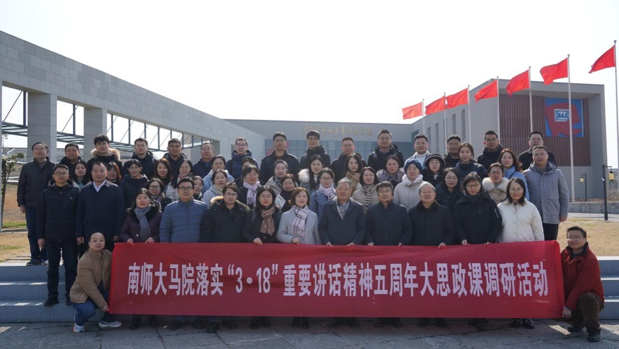 南师大马院全体思政课教师将带着此次习近平总书记“3·18”重要讲话精神五周年集体备课会的研学成果和革命老区黄花塘的红色基因和时代故事,怀揣着“为党育人、为国育才”的时代重任走进课堂,不断提升教书育人的本领,以“3·18”重要讲话中提到的“政治要强、情怀要深、思维要新、视野要广、自律要严、人格要正”严格要求自身,努力培养能够担当民族复兴大任的时代新人!