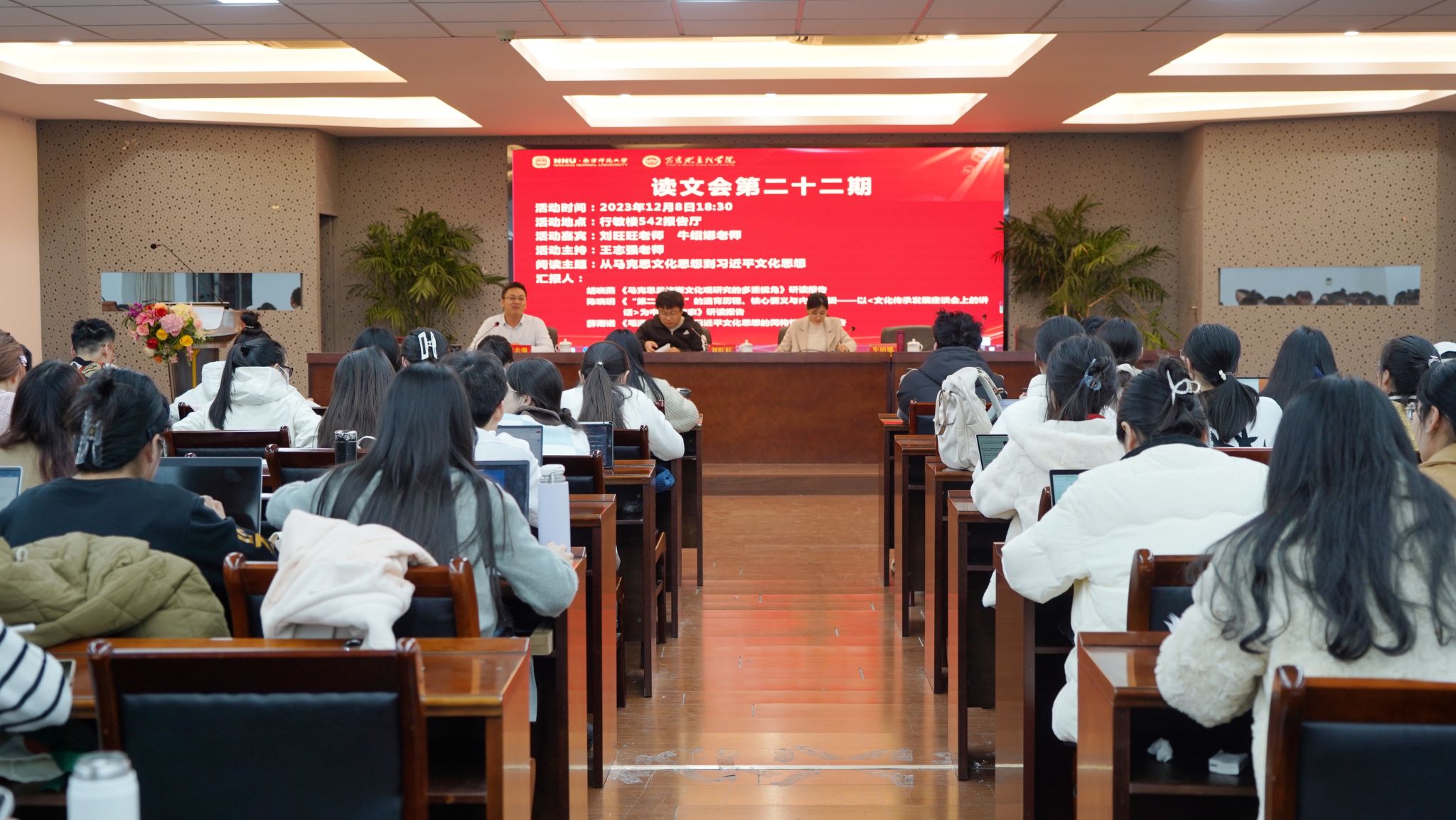第二十二期“读文会”于行敏楼542报告厅成功举办。本期“读文会”以“从马克思文化思想到习近平文化思想”为主题,由王志强老师主持,公共管理学院副教授刘旺旺老师以及网赌