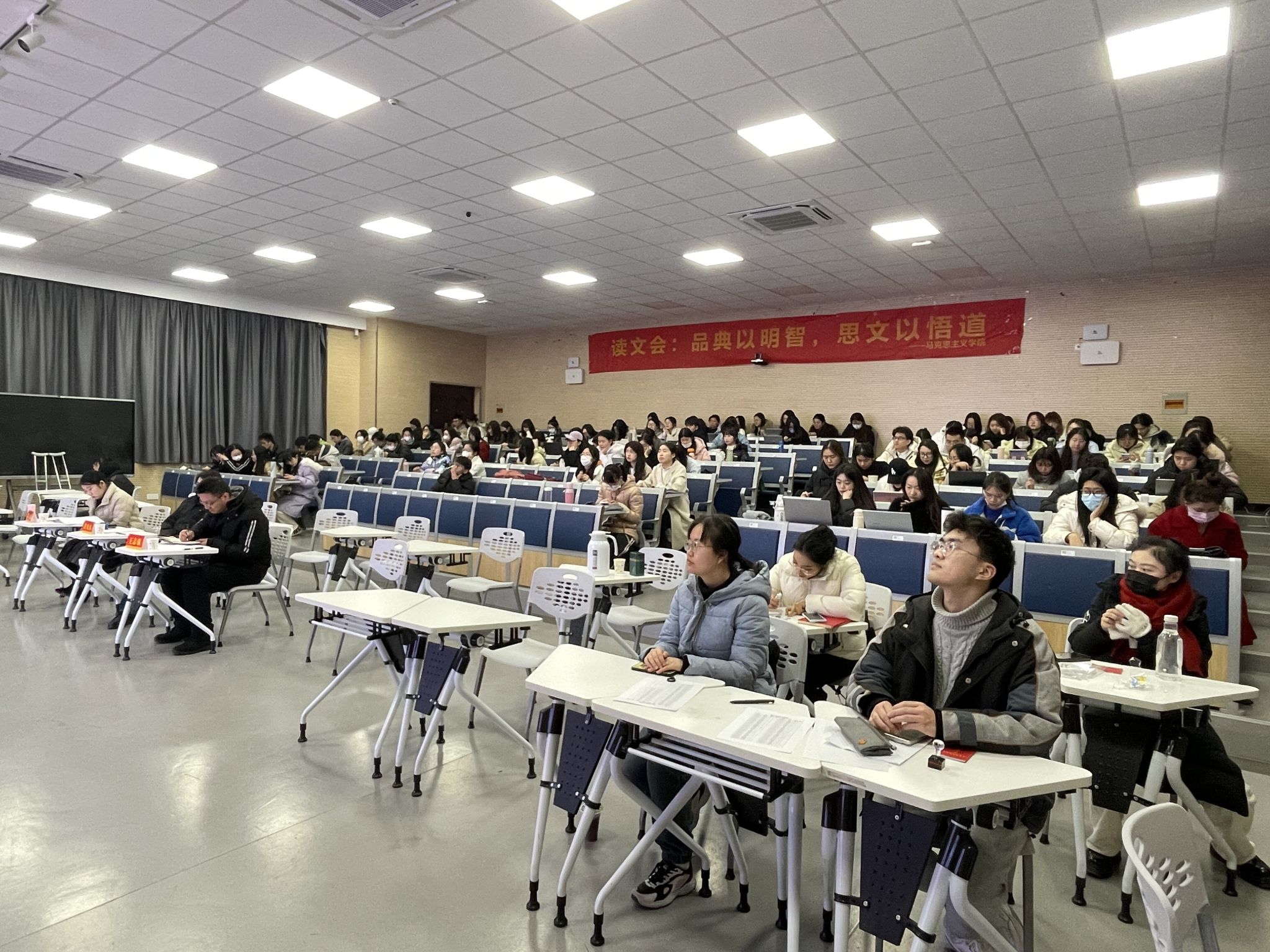 副教授路媛老师担任品评嘉宾。经过初步评选,罗荔枝、张杰和王运娇三位同学担任本期“读文会”汇报人,分别就各自研读的经典篇目与老师及同学进行了交流分享,与会同学互动热烈,会场学术氛围浓厚。