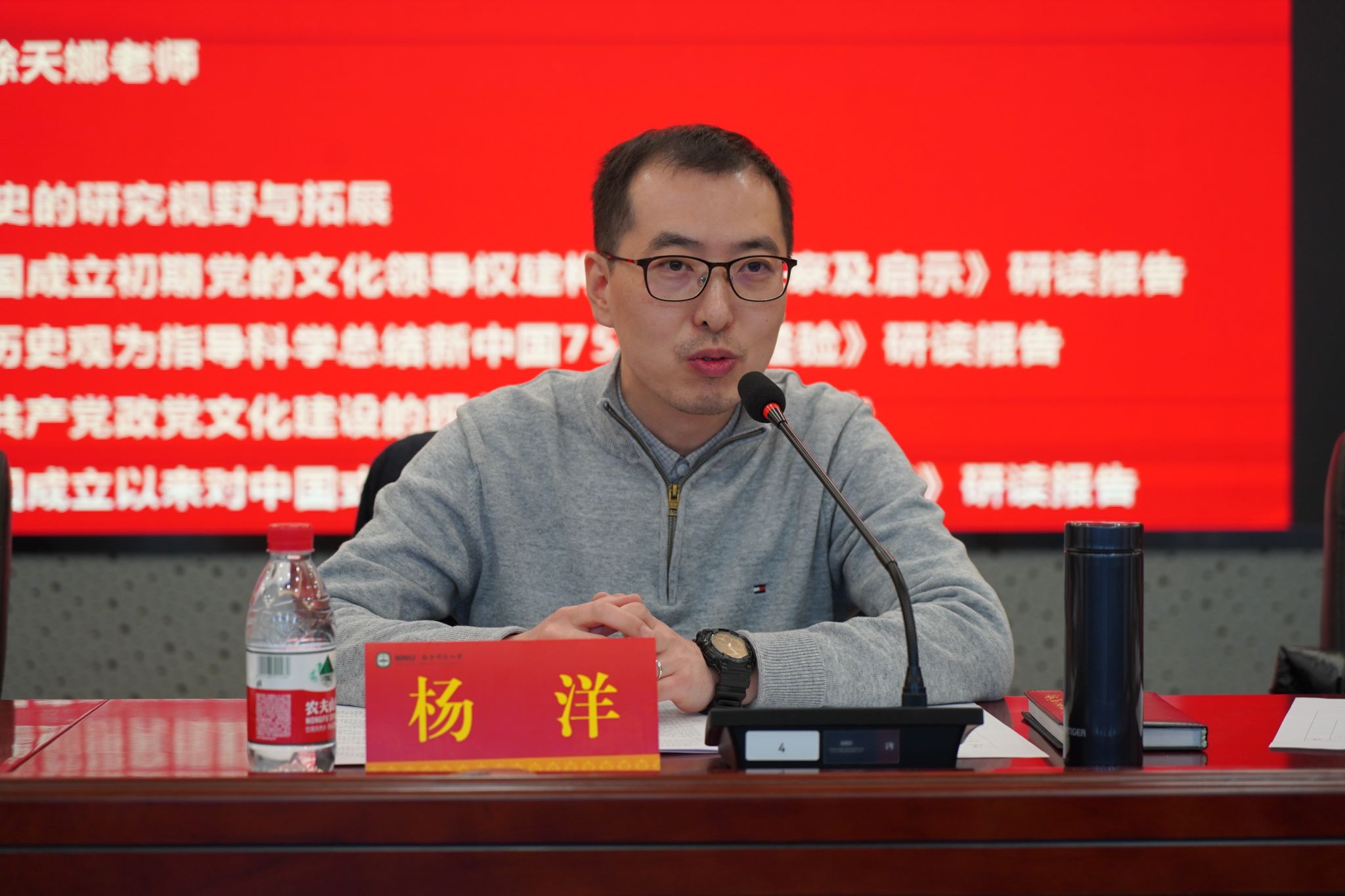 邓琳晓同学就其研读的《新中国成立初期党的文化领导权建构的历史考察及启示》进行了分享与汇报。首先,她具体阐释了“文化领导权”这一研究视角的概念和选题原因。其次,她从新中国成立初期文化领导权建构的历史背景、实践探索和当代启示三个方面梳理文章逻辑关系。最后,她以问题为导向,结合自身理解,分析了文章的优缺点。