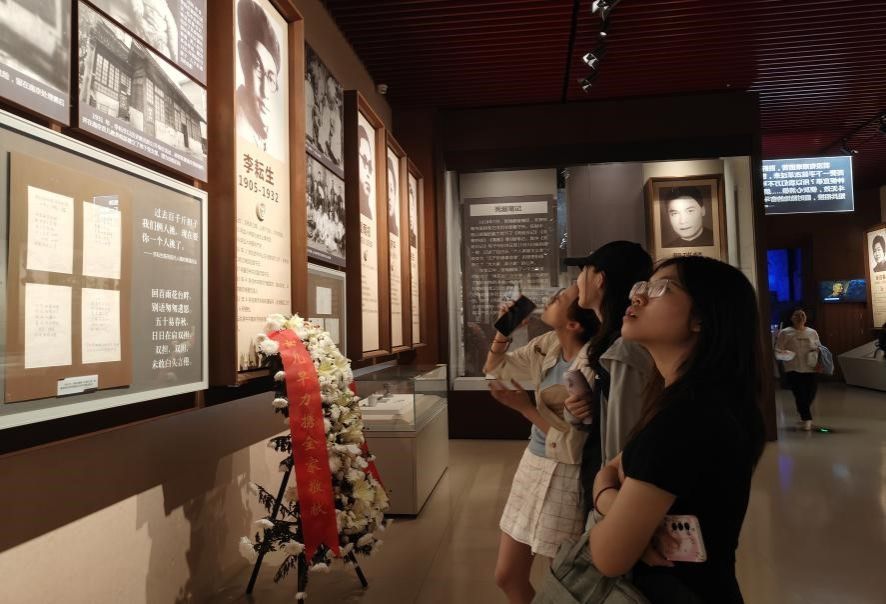 随后,老师和同学们拾级而上前往雨花台烈士纪念馆。在前往纪念馆的路上,老师们结合经过的纪念碑、丁香树、纪念桥、忠魂亭、烈士墓等为同学们现场讲授了雨花英烈群体感人至深的革命事迹,引导同学们感悟其所体现出的“崇高的理想信念、高尚的道德品质和为民牺牲的大无畏精神”。纪念馆以“信仰的力量——雨花英烈生平事迹展”为主题,集中展示了200余件革命文物、300余张历史影像和场景复原展陈,重温了邓中夏、恽代英等179 位雨花英烈的革命历程。当驻足于16岁烈士袁咨桐写在相片后的“永别人世”的绝笔前,同学们心中的震颤久久无法停息,作为雨花台最年轻的烈士,袁咨桐将如火的青春献给了革命事业,用滚烫的热血诠释了对马克思主义信仰的无比忠诚,铸就了不朽的灵魂丰碑!而在看到谭寿林烈士“天下有事,丈夫当以功济四海”的豪迈誓言后,师生们更深切地感受到革命先驱以天下为己任、勇于担当的壮志豪情。谭寿林烈士的这句话,正是雨花英烈们胸怀天下、舍身济世的实践品格与历史担当的生动写照。