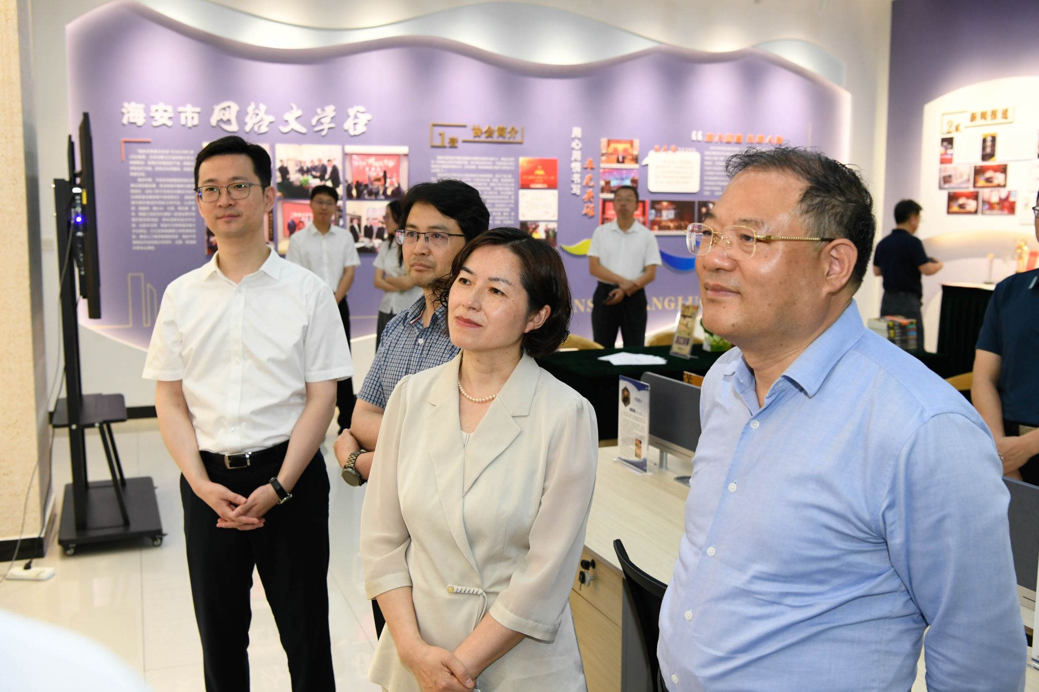 一行实地调研海安理论宣讲“布谷之家”、星湖001新时代文明实践综合体、海安市网络文学谷,对海安新时代生动的文明实践与丰硕成果开展深入调研。